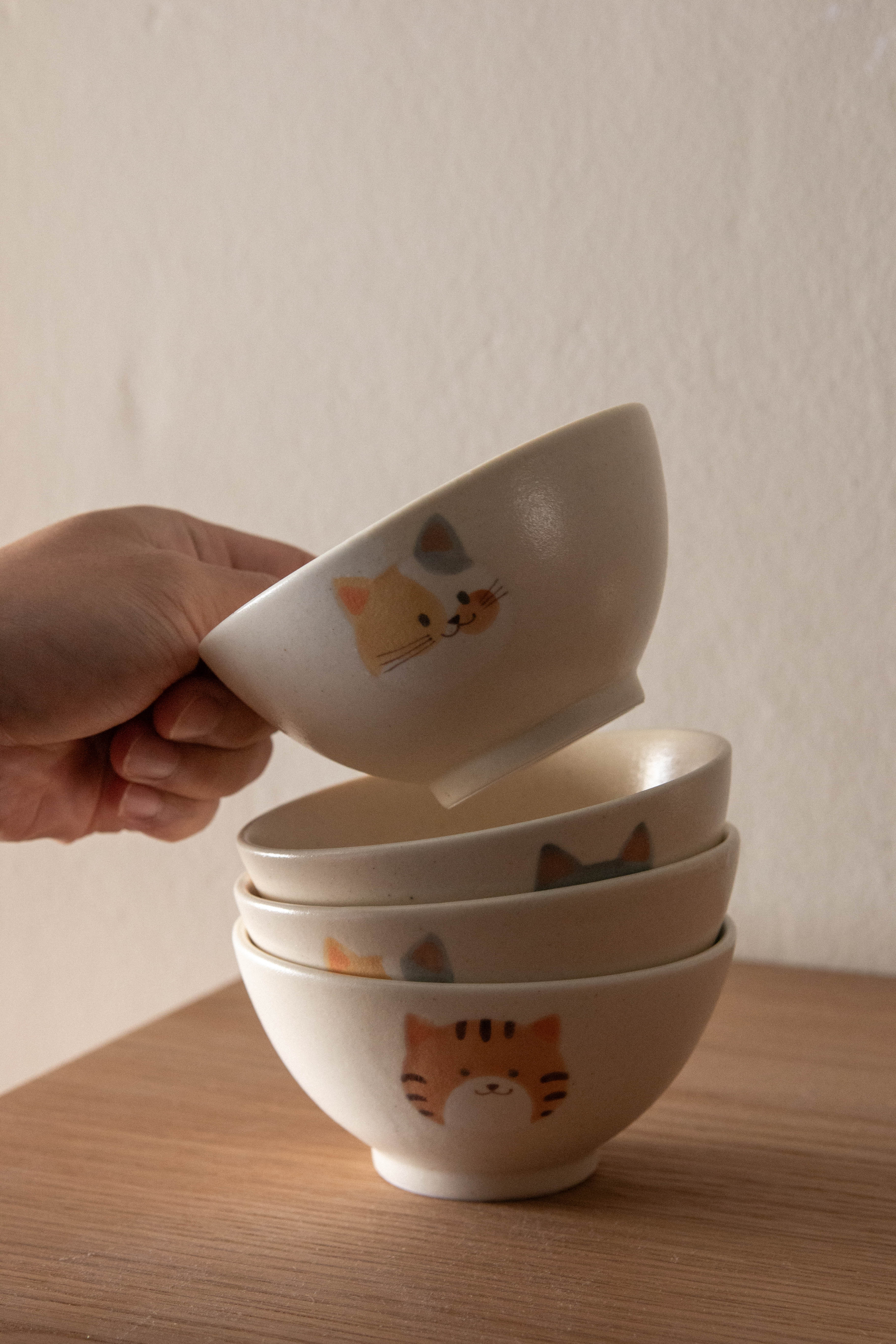 This rice bowl has three different species of cat faces - a different kind of love with each face <3